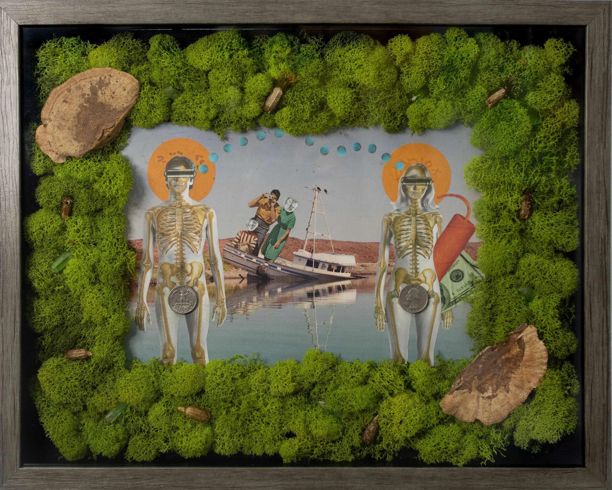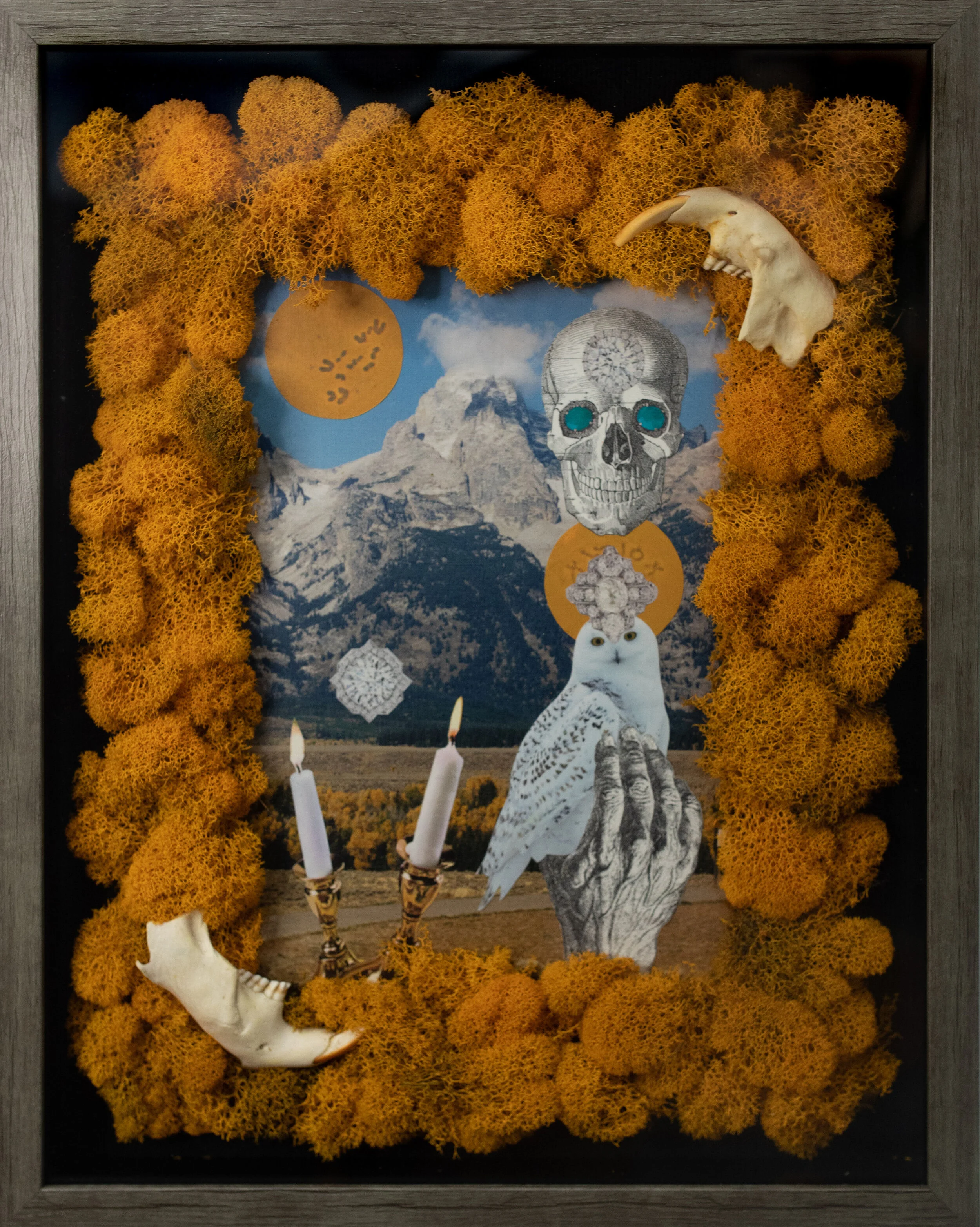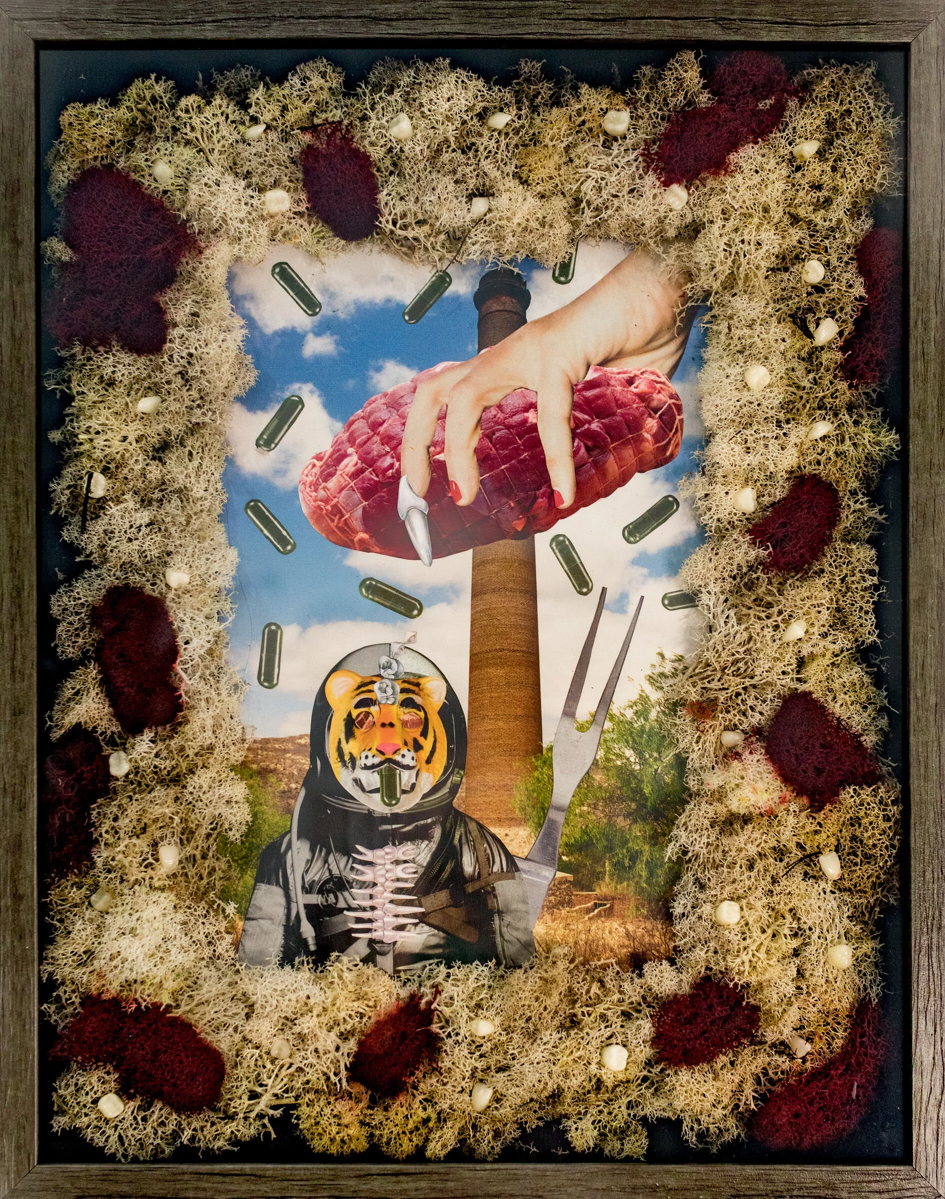 “I started creating this body of work in April of 2020, shortly after losing my bartending job when the pandemic first hit. At that time I had no idea that I would be opening an art gallery in a few months and similar to most people, was faced with a multitude of unknowns. Before the shutdown, I had often wished for more time to focus on my work. The onslaught of free time brought on by the pandemic felt like a cosmic joke - some kind of universal genie was out there granting my wish but forgot to mention the small price of a global pandemic to pay to make it happen. The collage portion of these pieces was mostly finished in those first few months of lockdown and then put aside as Trash Lamb Gallery came into fruition. Fast forward to April 2021 and pushing myself to finish, frame, and fine-tune the collection. Adding 3D aspects in the shadowbox frames was a new process for me that proved to be monumentally satisfying and I’m looking forward to more of it as my creative process continues to grow.”