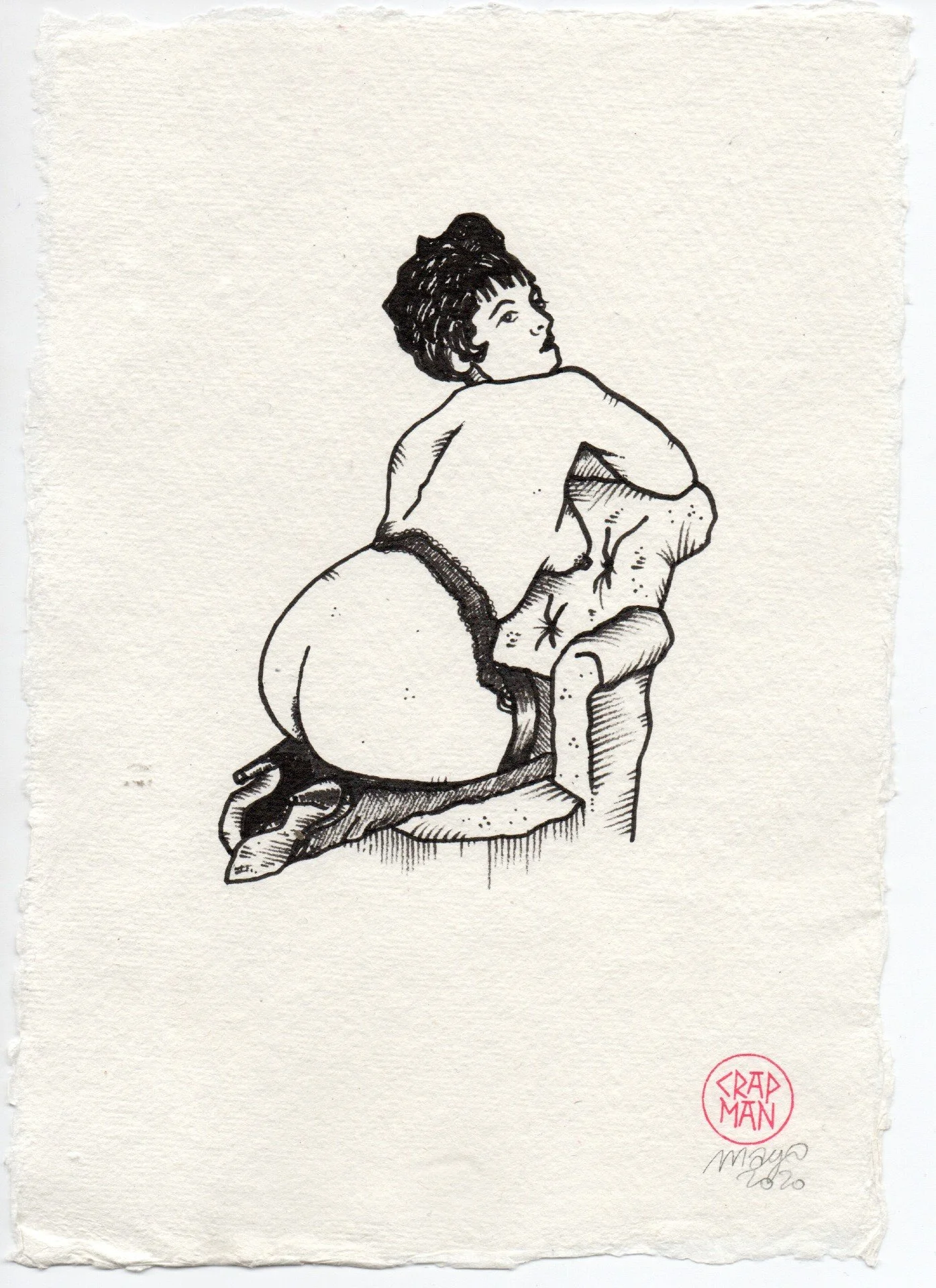 Slip It In / 2021 / Crap Man / Posca and calligraphy brush pen on 150 gram handmade paper / 21 x 30 centimeters / NFS